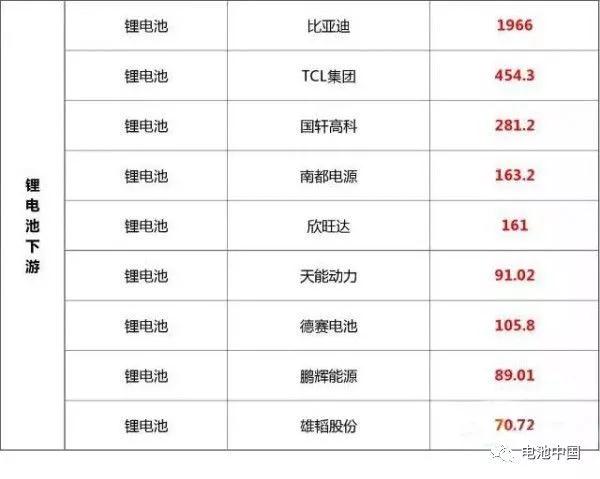 如圖所示,總市值超過500億的鋰電企業(yè)有4家,其中有3家均為鋰電池上游企業(yè),為天齊鋰業(yè)、贛鋒鋰業(yè)、鹽湖股份,1家為下游企業(yè)比亞迪,市值達(dá)1966億,有兩家鋰電企業(yè)市值有望沖破500億,分別為中信國安和TCL集團(tuán)。市值超過100億的企業(yè)有22家,占鋰電企業(yè)的76%,其余企業(yè)有望突破百億。