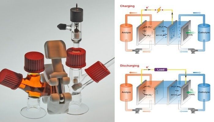 其中,溶解在水中的硫作為陽極液,含氧液體鹽溶液為陰極電解液。硫、水、鹽材料的成本很低,對于大規(guī)模儲能的電網(wǎng)系統(tǒng)來說,成本的削減,才是讓可再生能源普及和長期運行的關(guān)鍵。