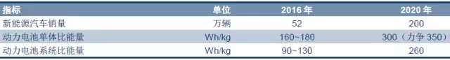 新能源汽車中長(zhǎng)期發(fā)展規(guī)劃對(duì)動(dòng)力電池能量密度指標(biāo)