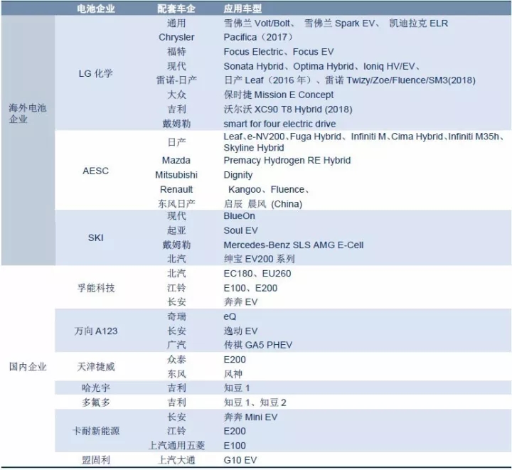 全球典型軟包裝動(dòng)力電池企業(yè)乘用車配套情況