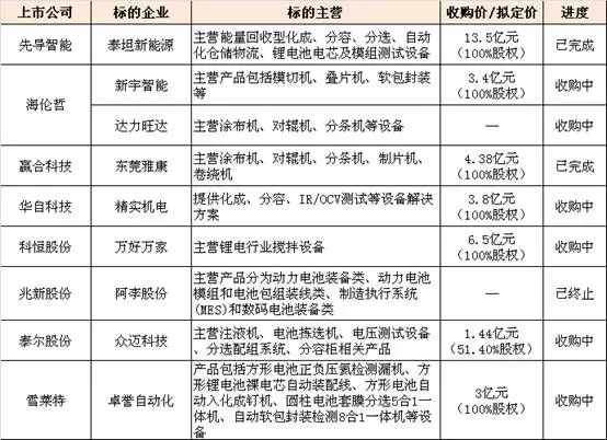 ▲2017年部分鋰電設(shè)備企業(yè)收購(gòu)案例