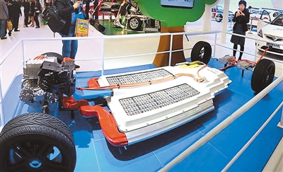 圖為電動(dòng)汽車的電池。 資料圖片