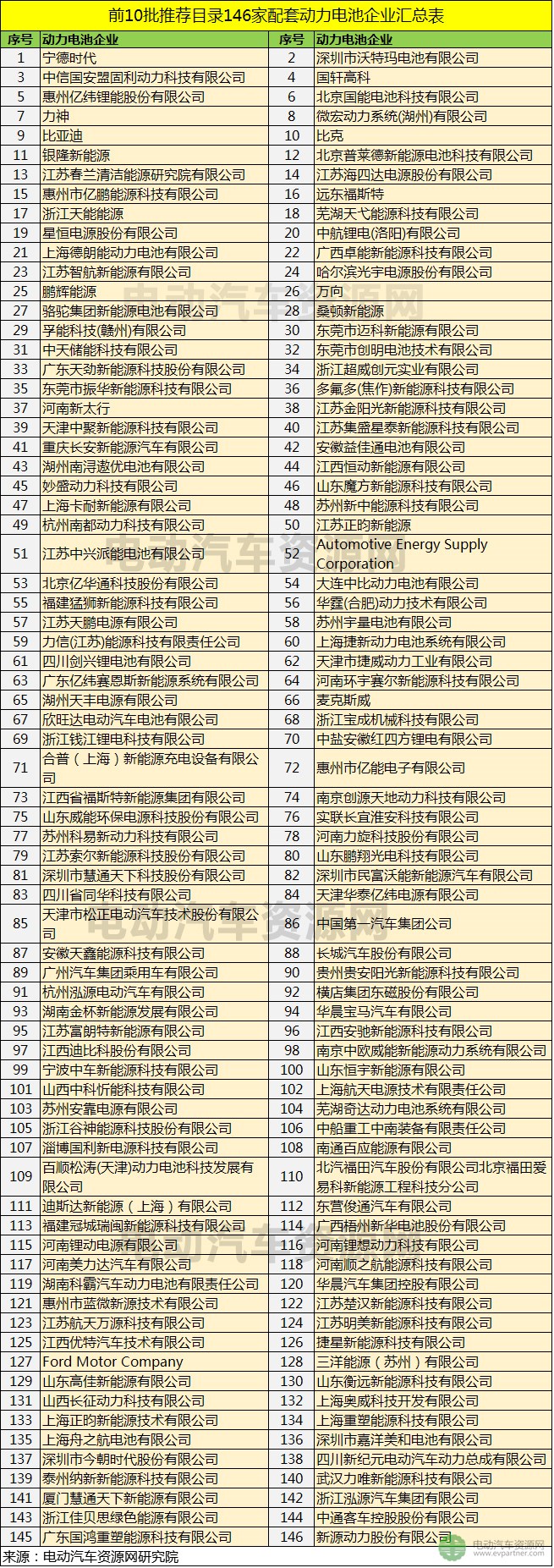 近日,2018年新能源汽車補貼調(diào)整政策討論方案流出,方案中動力電池系統(tǒng)能量密度提高、度電補貼下降,將動力電池再次推上風口浪尖。目前,我國動力電池整體處于什么樣的水平?能否支撐起后補貼時代新能源汽車市場?電動汽車資源網(wǎng)試圖從今年發(fā)布的《新能源汽車推廣應(yīng)用推薦車型目錄》中尋找些答案。本篇為第一篇,揭秘為推薦目錄車型提供配套的動力電池企業(yè)有哪些。
