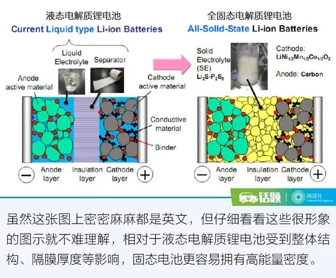 從工作原理上看,固態(tài)電池與傳統(tǒng)電解液鋰電池并無明顯區(qū)別,他的優(yōu)勢也很容易理解,就是鋰離子電池發(fā)展的兩大重要方向:1.能量密度更高、2.運(yùn)行更安全。