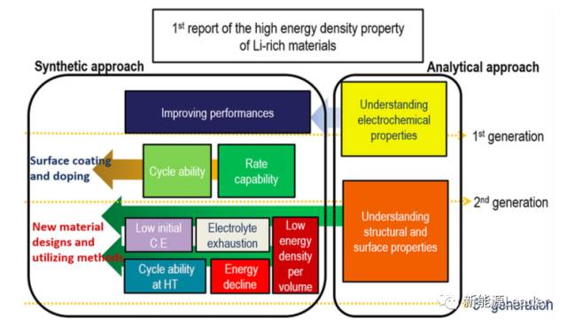 富鋰材料的活化過程對于富鋰材料的結(jié)構(gòu)穩(wěn)定性有著至關(guān)重要的影響,在活化的過程中會導(dǎo)致富鋰材料顆粒的表面穩(wěn)定性降低,引起界面副反應(yīng)增加,為此對于活化制度的研究就顯得尤為重要(下圖為富鋰材料發(fā)展圖解)。