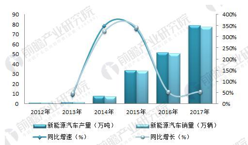 新能源汽車作為動(dòng)力鋰電池的重要應(yīng)用領(lǐng)域,其行業(yè)發(fā)展需求將對(duì)鋰電池行業(yè)有較大的影響。2012-2017年,我國(guó)新能源汽車產(chǎn)銷量上升趨勢(shì)明顯,以2015年為最大的產(chǎn)銷增速,在增量供應(yīng)增加的影響下,2016年后行業(yè)趨于平穩(wěn)上升發(fā)展。2017年我國(guó)新能源汽車的產(chǎn)銷規(guī)模分別為79.4萬輛和77.7萬輛,增速均超過50%。新能源汽車呈現(xiàn)供過于求的發(fā)展局面,但總體而言供求趨于平衡。