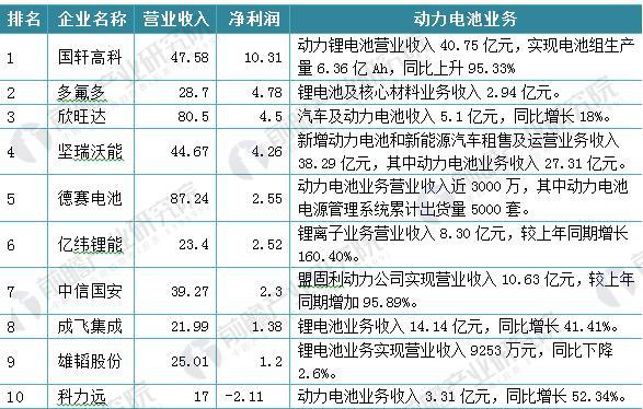 2016年國(guó)內(nèi)涉及動(dòng)力鋰電池業(yè)務(wù)的十家上市企業(yè)公布了其公司的經(jīng)營(yíng)狀況及動(dòng)力鋰電池的業(yè)務(wù)規(guī)模,其中國(guó)軒高科動(dòng)力鋰電池營(yíng)業(yè)收入40.75億元,占營(yíng)業(yè)收入比重的85.64%,同比增長(zhǎng)90.84%。堅(jiān)瑞沃能動(dòng)力電池業(yè)務(wù)實(shí)現(xiàn)營(yíng)業(yè)收入27.31億元。中信國(guó)安旗下盟固利動(dòng)力公司實(shí)現(xiàn)營(yíng)業(yè)收入10.63億元,比上年同期增長(zhǎng)95.89%。成飛集成鋰電池業(yè)務(wù)收入14.14億元,同比增長(zhǎng)41.41%。再過家政策及下游需求的推動(dòng)下,經(jīng)營(yíng)動(dòng)力鋰電池的企業(yè)應(yīng)注重電池性能的研發(fā)及推廣應(yīng)用,以提升公司的綜合競(jìng)爭(zhēng)力。