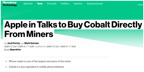 21日下午,一條重磅消息不脛而走:據(jù)相關(guān)人士披露,蘋果正在謀求收購鈷礦原料。
