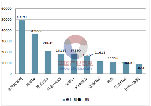 2017 年1-10 月純電動乘用車銷量前10 的車型