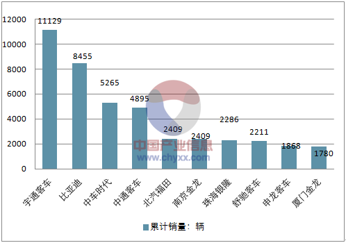 2017 年1-10 月純電動客車銷量前10 的企業(yè)