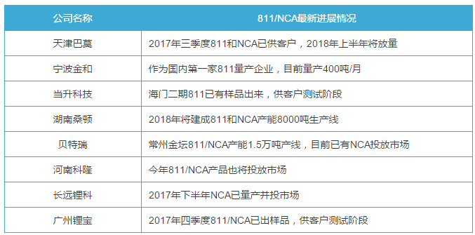 目前我國國內(nèi)三元材料廠家811/NCA型材料生產(chǎn)進展到底如何了呢?小編借此來盤點一下: