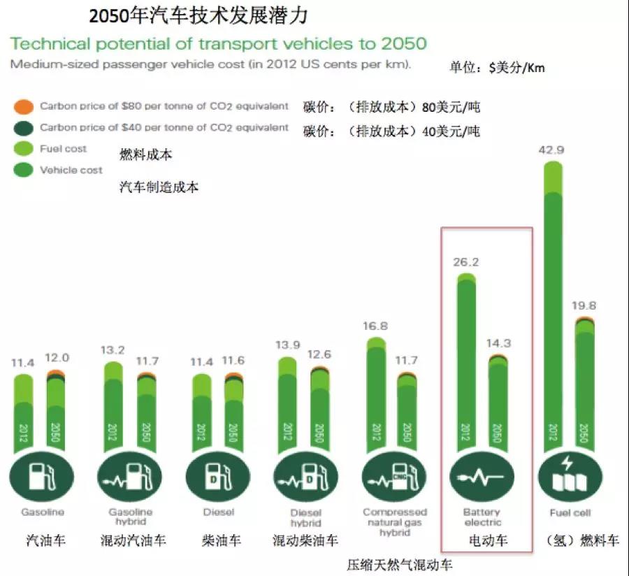 混合動力汽車方面,目前在北美已上路超過300萬輛,得益于剎車充電技術的普及,混動汽車的未來市場占有率將不斷提升,據(jù)BP分析,混合動力汽車的每公里行使成本有望在2050年下降至0.117美分/Km,將是所有類型汽車中最低的。