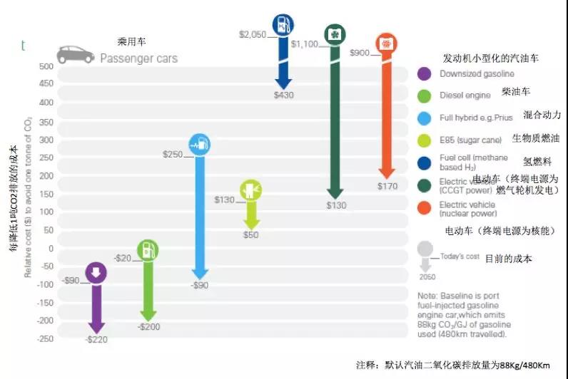 綜合來看(圖二),發(fā)動機小型化的汽油車在節(jié)能環(huán)保領域的成本最低,而電動汽車與氫燃料汽車的能節(jié)能成本過高,目前每降低1噸CO2排放,氫燃料汽車需花費$2050美元,電動車需花費$1100,BP認為新能源汽車的發(fā)展將是一個循序漸進的過程,還需要較長時間的技術積累。