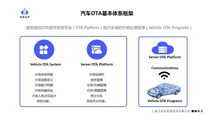 近日,億歐汽車邀請到了艾拉比總裁芮亞楠,基于其在電子、軟件行業(yè)12年的從業(yè)經(jīng)驗,請他為我們具體解析智能網(wǎng)聯(lián)汽車OTA體系的設(shè)計與實踐。ABUP艾拉比智能科技專注為汽車、物聯(lián)網(wǎng)領(lǐng)域合作伙伴提供專業(yè)OTA升級技術(shù)解決方案和定制化服務(wù)。該公司目前正式合作的客戶包括比亞迪、江淮、上汽通用、上汽乘用車、長城汽車等主機廠,以及國內(nèi)Tier 1供應(yīng)商等,具備一定合作經(jīng)驗與技術(shù)基礎(chǔ)。
