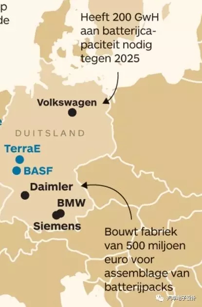 2017年8月,德國(guó)法蘭克福TerraE控股公司聯(lián)合17家德國(guó)公司組建聯(lián)盟,計(jì)劃興建一座產(chǎn)能達(dá)34千兆瓦時(shí)的廠鋰離子超級(jí)工廠。該項(xiàng)目獲德國(guó)教育部和研究部門620萬(wàn)美元補(bǔ)貼,預(yù)計(jì)將于2019年第4季度破土動(dòng)工,2028年實(shí)現(xiàn)全部產(chǎn)能。