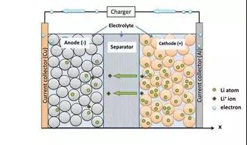 同時在負(fù)極顆粒表面發(fā)生電化學(xué)反應(yīng),嵌入Li+,使顆粒內(nèi)部出現(xiàn)濃度差異,導(dǎo)致Li+在顆粒內(nèi)部產(chǎn)生從外向內(nèi)的固相擴散。在隔膜處,由于正極與負(fù)極過程導(dǎo)致的濃度差異,導(dǎo)致該區(qū)域的Li+產(chǎn)生從正極到負(fù)極的擴散與遷移,放電過程則與上述過程相反。由上述過程可知,鋰電池的正常、高效運轉(zhuǎn),主要決定于鋰離子在電池內(nèi)部的遷移情況。鋰離子的遷移情況受到電解液的性質(zhì)的制約,電解液的性質(zhì)主要是由以下要素影響的。