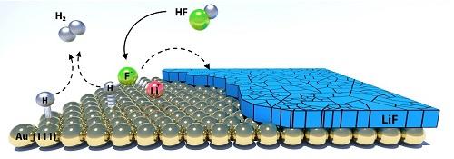 實(shí)驗(yàn)和計(jì)算結(jié)果指出,電池充電過(guò)程中會(huì)產(chǎn)生氟化氫(hydrogen fluoride)電化學(xué)反應(yīng),從電解質(zhì)轉(zhuǎn)變成固態(tài)氟化鋰并生成氫氣,這類反應(yīng)高度依賴石墨、石墨烯和金屬等電極材料,證明電池催化劑的重要性。