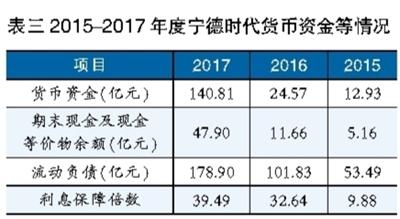 表三 2015-2017年度寧德時(shí)代貨幣資金等情況