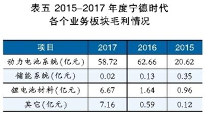 表五 2015-2017年度寧德時(shí)代各個(gè)業(yè)務(wù)板塊毛利情況