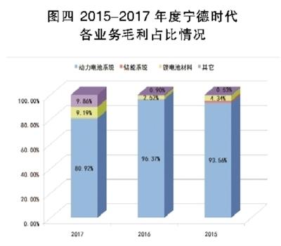 圖四 2015-2017年度寧德時(shí)代各業(yè)務(wù)毛利占比情況