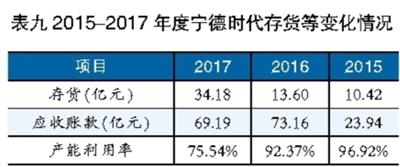 表九 2015-2017年度寧德時(shí)代存貨等變化情況