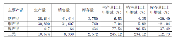 洛陽鉬業(yè)2017產銷量情況分析表: