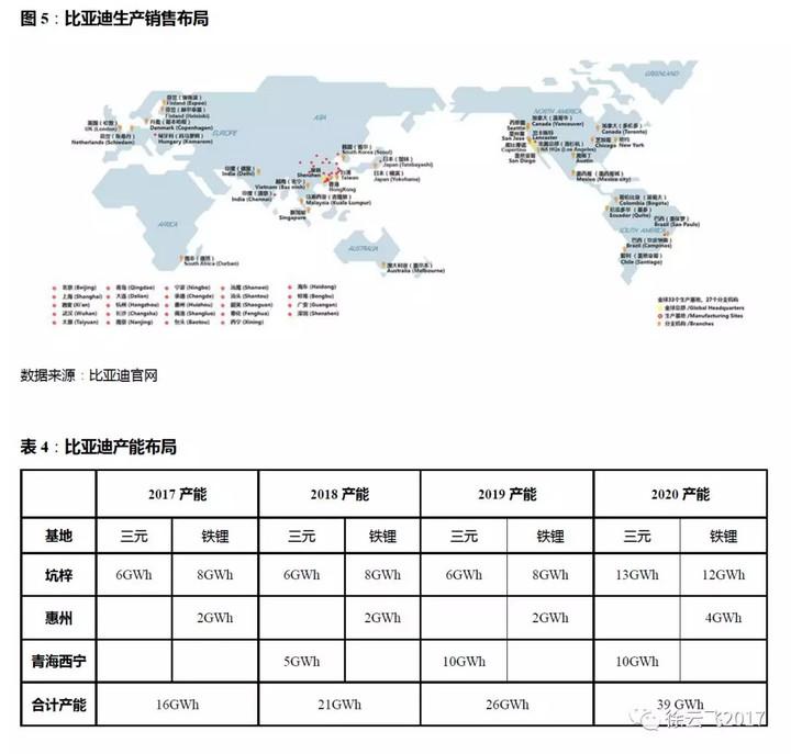 公司依照“一院、兩區(qū)、五基地”的戰(zhàn)略規(guī)劃,重點產(chǎn)能部署地將是華東區(qū)域,17年目前產(chǎn)能10GWh ,主要生產(chǎn)基地是天津,青島、蘇州、綿陽,武漢等。預計2018年產(chǎn)能將達15GWh(7.5GWh方形LFP+2.4GWh三元方形+5.2GWh三元圓柱),2020年規(guī)劃達到30GWh。