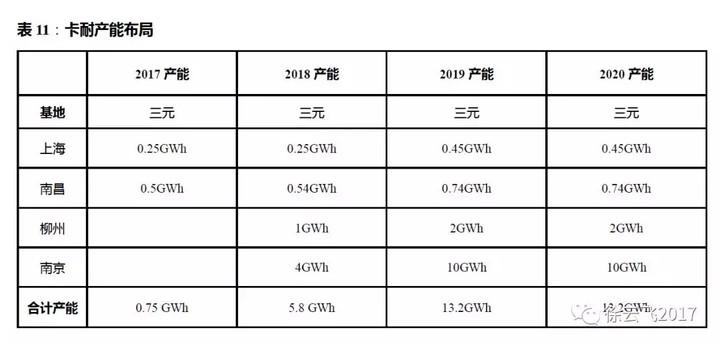 柳州:產(chǎn)能規(guī)劃1GWh,2018年5月達產(chǎn),未來柳州基地的產(chǎn)能有望繼續(xù)擴至2GWh。