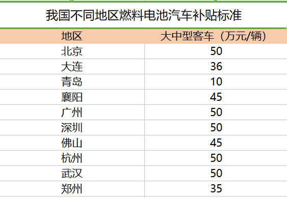 與此同時,地方補(bǔ)貼同樣不小。2018年5月21日,上海市科委印發(fā)《上海市燃料電池汽車推廣應(yīng)用財政補(bǔ)助方案》,指出,燃料電池車按照中央財政補(bǔ)助1:0.5給予上海市財政補(bǔ)助。燃料電池系統(tǒng)達(dá)到額定功率不低于驅(qū)動電機(jī)額定功率的50%,或不小于60kW的,按照中央財政補(bǔ)助1:1給予上海市財政補(bǔ)助。而其他一線城市,比如北京、深圳、杭州等地區(qū),對氫能源汽車則實施與國家1:1的補(bǔ)貼政策。按照這樣的補(bǔ)貼標(biāo)準(zhǔn),一輛中大型燃料客車的補(bǔ)貼甚至能達(dá)到100萬元。