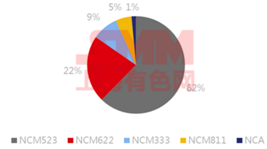 2018年Q1中國三元材料產(chǎn)量分型號占比:
