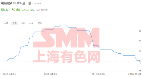 受高鎳的浪潮影響,鈷的需求和價格收到了一定程度的沖擊,有市場人士認(rèn)為,隨著鈷材料被高鎳材料所替代,鈷價將一路下跌,但是據(jù)SMM6月1日發(fā)布的一文中指出,根據(jù)調(diào)研得知,近日正極材料廠商對上游原材料詢單開始增多,但是由于上游原材料仍舊處于下滑通道,因此詢單數(shù)量較小,且意向采購價格較低。不過當(dāng)前正極材料廠商原材料庫存水平低于安全庫存,因此SMM預(yù)計本月對上游鈷鋰原材料將會執(zhí)行少量多次采購策略。