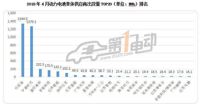 根據(jù)第一電動(dòng)研究院的統(tǒng)計(jì)測(cè)算,2018年4月國(guó)內(nèi)新能源汽車市場(chǎng)動(dòng)力電池裝機(jī)量為3.756GWh,同比增長(zhǎng)261.56%,其中比亞迪以1.34GWh的裝機(jī)量登頂,占比35%,這是比亞迪的月裝機(jī)量在時(shí)隔一年后再次超過(guò)CATL排在首位,寧德時(shí)代以1.27GWh的裝機(jī)量排在第二位,占比34%,今年以來(lái)獨(dú)占一半市場(chǎng)份額的狀況被打破。