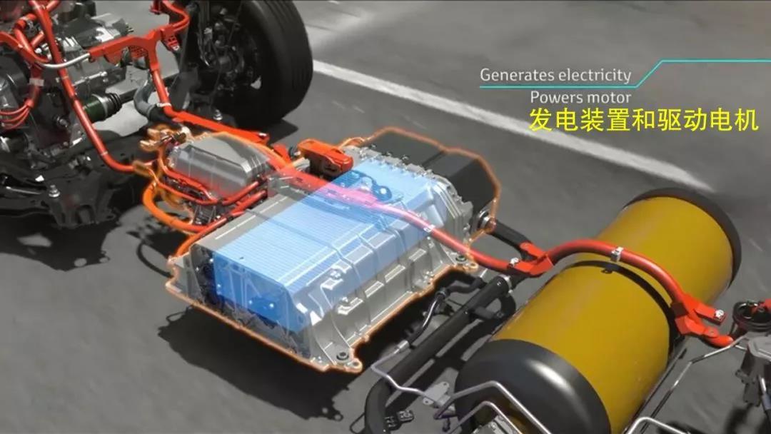 下面的視頻中,工作人員在進(jìn)行所有的操作前,先利用氦氣進(jìn)行氫氣泄漏測試;接著,工人們將燃料電池堆棧和高壓儲(chǔ)氫罐同時(shí)裝進(jìn)車?yán)?,隨后要進(jìn)行電動(dòng)機(jī)的安裝以及將空氣壓縮器和燃料電池堆棧連接的工作。