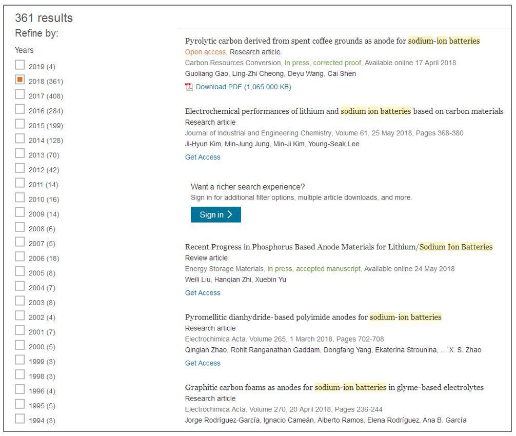 1994年至今,鈉離子電池相關的學術論文發(fā)表數(shù)量。