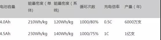 目前蘇州力神推出了4.0Ah、4.5Ah兩款21700電池產(chǎn)品,以4.5Ah產(chǎn)品為主。這兩款電池的具體性能等指標(biāo)如下表: