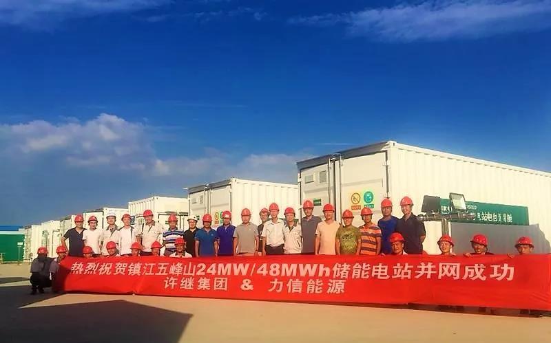 鎮(zhèn)江電網(wǎng)側(cè)儲(chǔ)能電站示范工程是全球最大的電化學(xué)儲(chǔ)能電站、功能最全面的儲(chǔ)能電站,面對(duì)挑戰(zhàn),力信能源快速組建核心儲(chǔ)能項(xiàng)目組,從各項(xiàng)標(biāo)準(zhǔn)文件的落實(shí)到最后一只集裝箱總裝完成,力信能源儲(chǔ)能項(xiàng)目團(tuán)隊(duì)連軸奮戰(zhàn),克服時(shí)間緊、氣溫高、調(diào)試數(shù)據(jù)量大等多重困難,成功交付40個(gè)集裝箱,15200個(gè)Pack電池包,729600只電芯,圓滿完成了鎮(zhèn)江北山站和五峰山儲(chǔ)能電站的建設(shè)和投運(yùn)工作。
