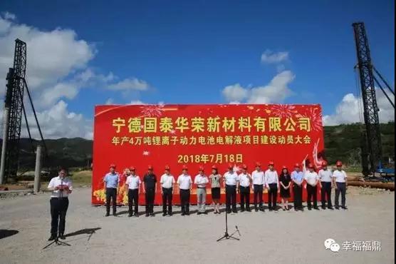 中國儲能網(wǎng)訊:7月18日上午,福建寧德國泰華榮新材料有限公司(下稱“寧德國泰”)年產(chǎn)4萬噸鋰離子動力電池電解液項目正式開工。
