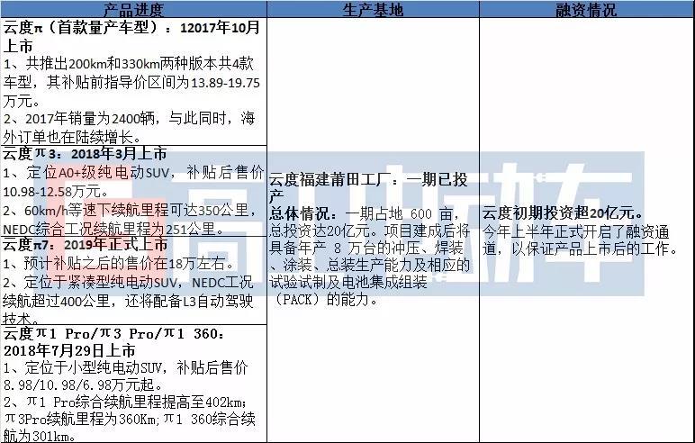 量產(chǎn)車型:云度π1、π3、π7、π1 Pro、π3 Pro