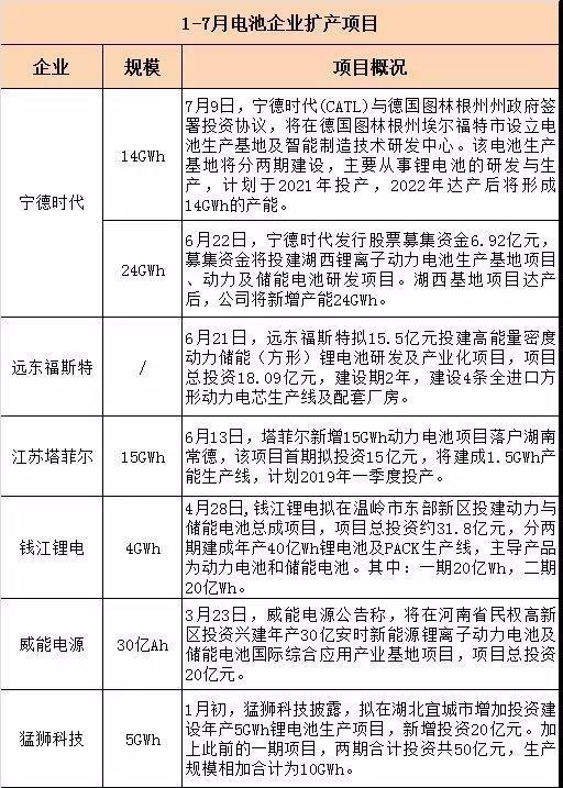 根據(jù)公開(kāi)資料梳理發(fā)現(xiàn),截止7月26日,動(dòng)力電池投擴(kuò)產(chǎn)規(guī)模超88GWh(部分企業(yè)未披露具體規(guī)模)。