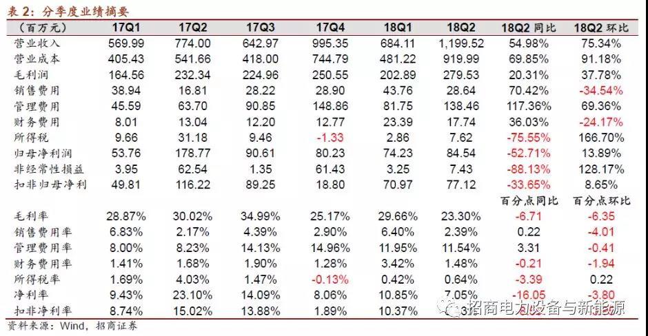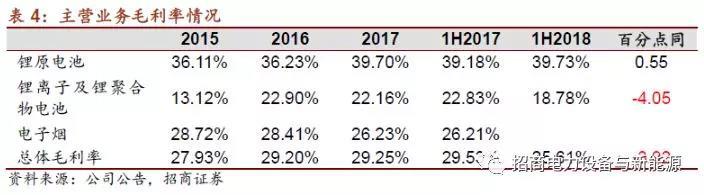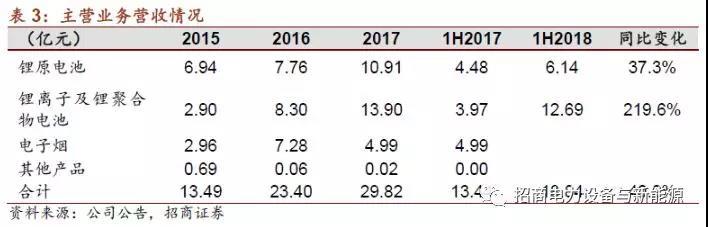 鋰離子電池方面,2018年上半年公司該業(yè)務(wù)營收同比增長近220%,大幅提升主要系動力和消費(fèi)類電池業(yè)務(wù)快速發(fā)展。不過本期鋰離子電池業(yè)務(wù)毛利率同比下滑約4個ppt至18.8%左右,預(yù)計主要系公司動力電池產(chǎn)品出貨價在上半年出現(xiàn)下滑。