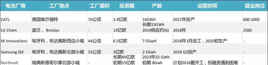 2018年7月9日,寧德時(shí)代(CATL)與德國(guó)圖林根州政府簽署了投資協(xié)議,宣布在埃爾福特建立電池工廠,投資2.4億歐元,計(jì)劃于2021年投產(chǎn),2022年達(dá)到產(chǎn)能14GWh。