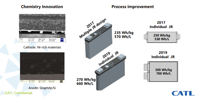 寧德時(shí)代能量密度發(fā)展路線圖: (寧德時(shí)代自2017年始能量密度持續(xù)攀升)