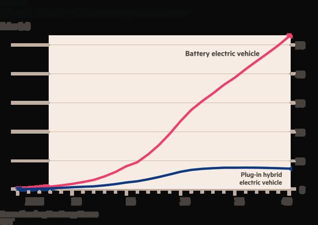 隨著各國(guó)環(huán)保法案的逐漸收緊,電動(dòng)車開(kāi)始吃香,2010 年時(shí)純電和插電混動(dòng)車型一共只賣出了 6000 臺(tái),到去年這一數(shù)字就暴增到 100 萬(wàn)臺(tái),不過(guò)依然只占到全球汽車銷量的 1%。
