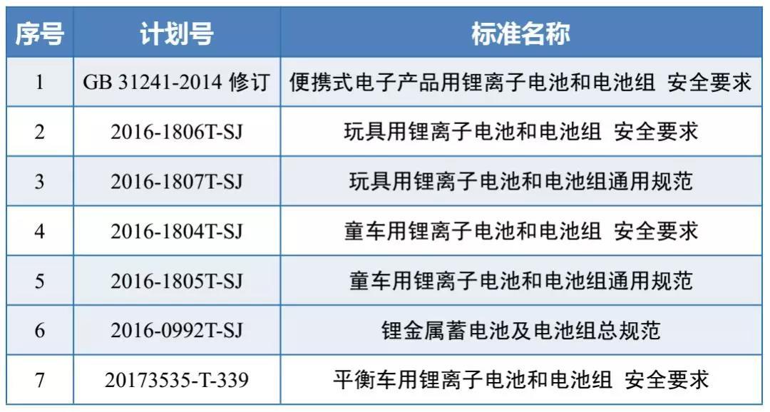 本次會議啟動了《鋰離子電池和電池組安全使用指南》、《分布式儲能用鋰離子電池和電池組性能規(guī)范 第2部分:道路交通與景觀照明設(shè)施》、《服務(wù)機(jī)器人用鋰離子電池和電池組通用規(guī)范》3項(xiàng)新標(biāo)準(zhǔn)的制定工作,并對GB 31241-2014英文版、玩具、童車、平衡車領(lǐng)域的7項(xiàng)電池標(biāo)準(zhǔn)進(jìn)行了討論,具體討論標(biāo)準(zhǔn)名稱如下:
