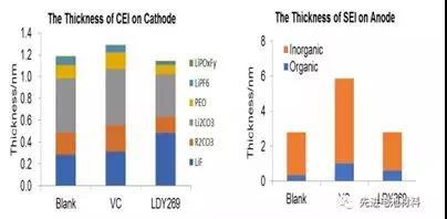 SEI和CEI的XPS分析也證實了LDY269所形成的SEI和CEI的厚度會明顯低于VC所形成的SEI和CEI。