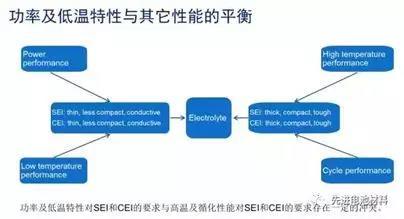 從提高功率和低溫特性的角度來看,希望SEI和CEI盡量薄,不要太致密且導電性要好;但是從提高電池的高溫性能和循環(huán)性能來講,希望CEI和SEI厚一些或者致密一些且強度和韌性要好。