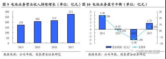 年報(bào)數(shù)據(jù)顯示,2017年LG化學(xué)電池業(yè)務(wù)(包括小型電池、動(dòng)力電池和ESS電池)收入274億元,占總收入的17%,電池業(yè)務(wù)營業(yè)利潤1.73億元。對比來看,近年來公司電池業(yè)務(wù)營業(yè)收入持續(xù)增長,但營業(yè)利潤一直處于較低水平,如下圖所示(2016年為負(fù)值,2015年和2017年?duì)I業(yè)利潤為正,但毛利率接近為0):