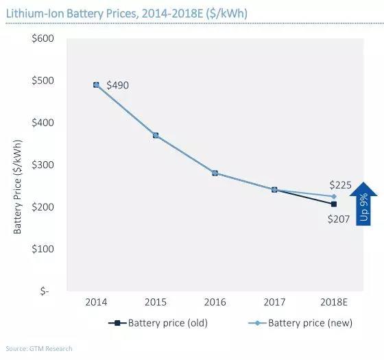 GTM Research預測,電池價格在2018年期間還會再下降14%,但價格下降的幅度明顯放緩。