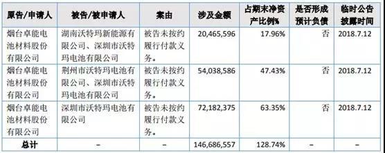 據(jù)了解,卓能材料曾向法院提請?jiān)V訟,因向堅(jiān)瑞沃能(300116)部分子公司沃特瑪供應(yīng)磷酸亞鐵鋰被拖欠貨款約1.47億,至報(bào)告披露日,案件尚未開庭審理。