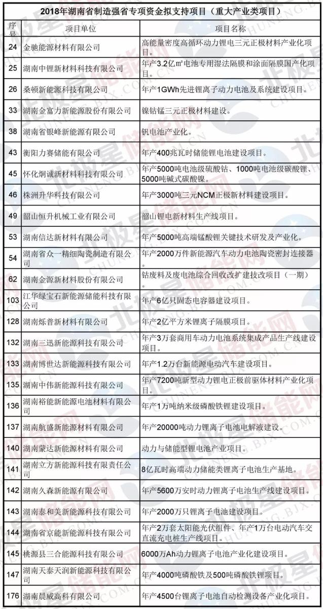 2018年湖南省制造強(qiáng)省專(zhuān)項(xiàng)資金擬支持項(xiàng)目(重大產(chǎn)業(yè)類(lèi))中就包含了年產(chǎn)3.2億㎡電池專(zhuān)用濕法隔膜和涂面隔膜國(guó)產(chǎn)化、釩電池產(chǎn)業(yè)化、年產(chǎn)400兆瓦時(shí)儲(chǔ)能鋰電池建設(shè)等20多項(xiàng)儲(chǔ)能相關(guān)項(xiàng)目。